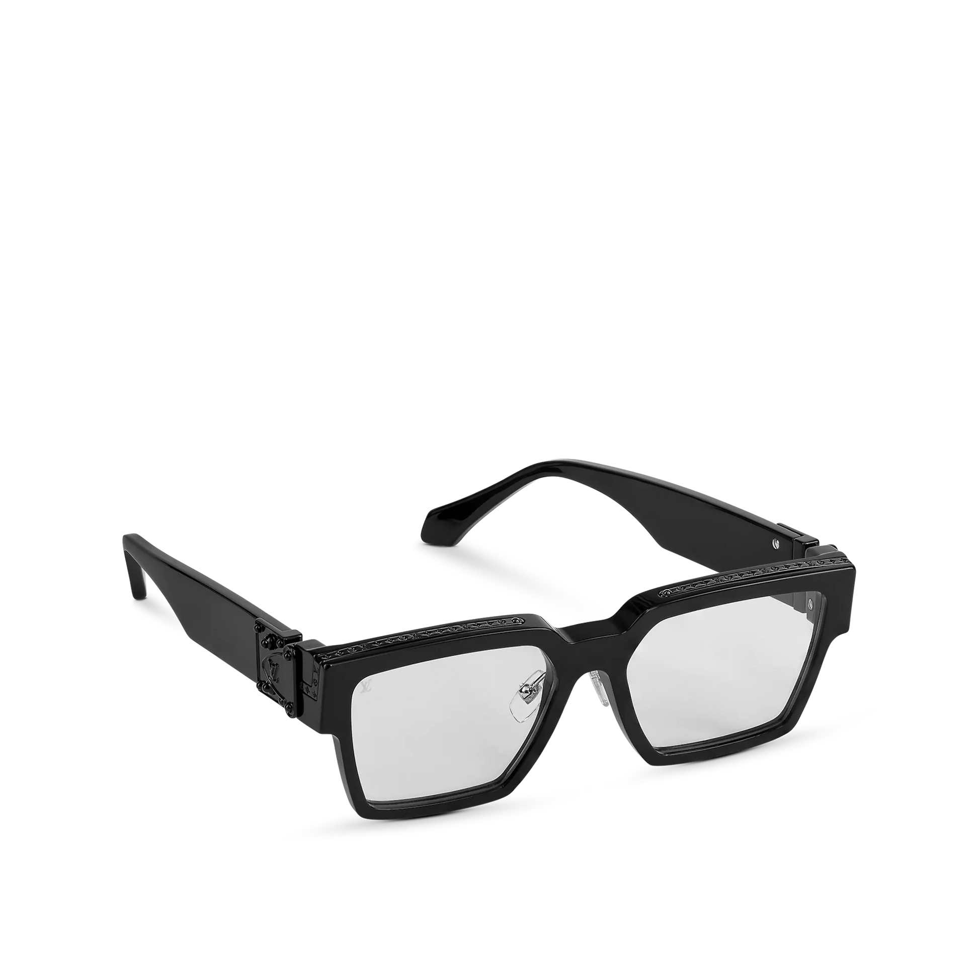 Updated with a thinner frame, the 1.1 Clear Millionaires sunglasses add an elegant vibe to everyday looks. This retro-inspired square style showcases the House's iconic S-lock hinges from the sunglasses collection archives, a feature that was relaunched for Spring-Summer 2019. Discreet House motifs include a finely engraved Monogram pattern and Initials on the lens.