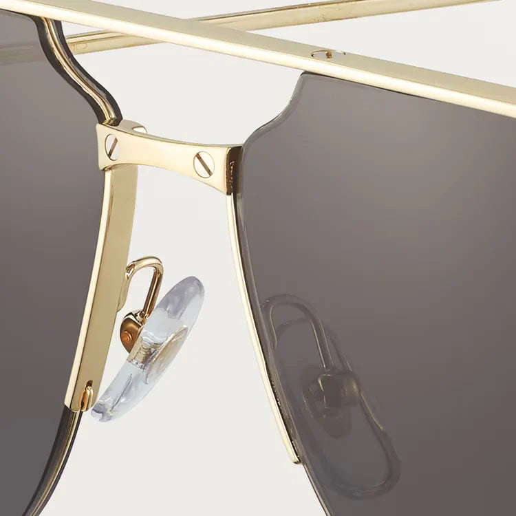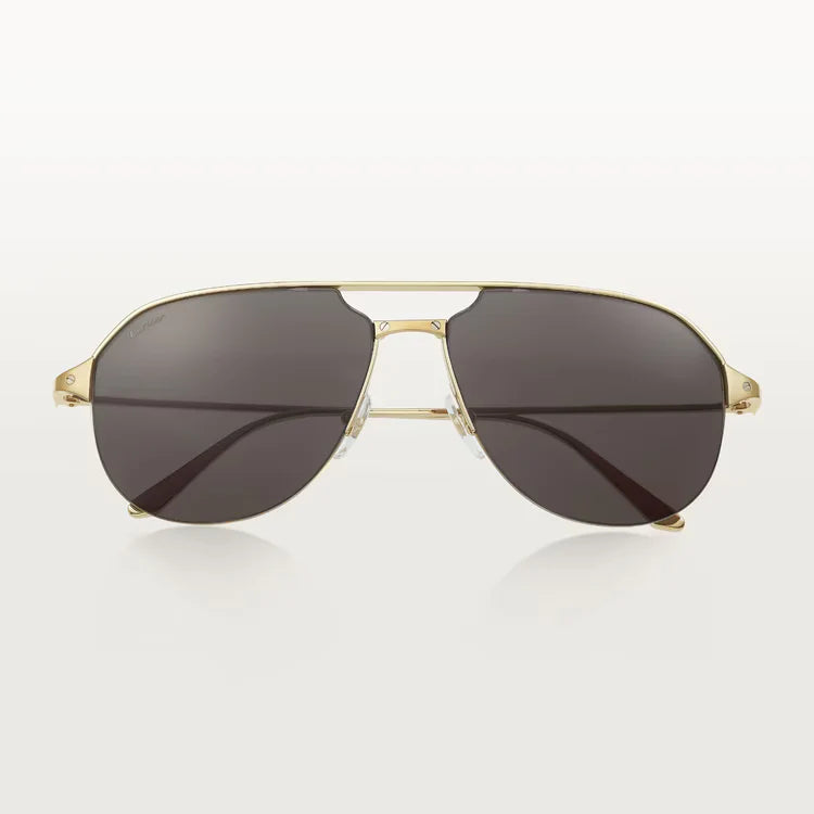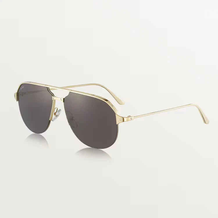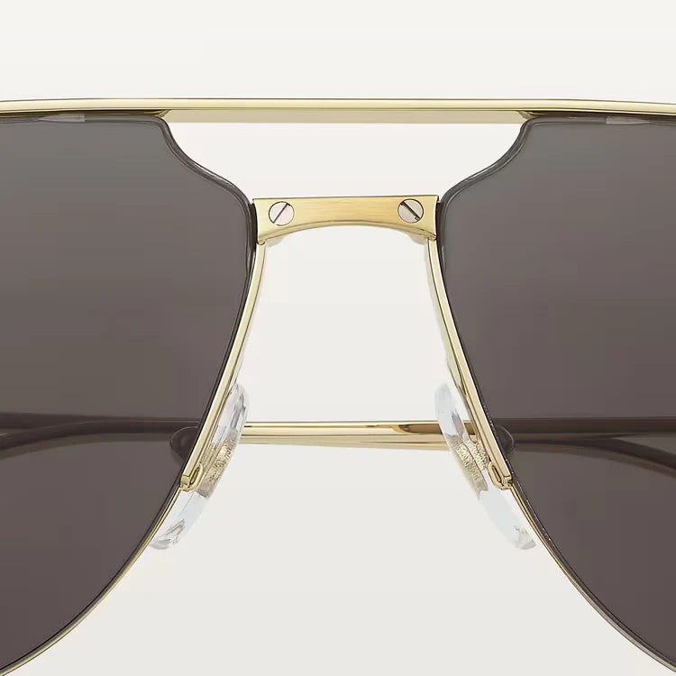 Santos de ca sunglasses in smooth and brushed golden-finish metal, golden-finish metal screws, pilot shape and gray lenses.